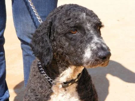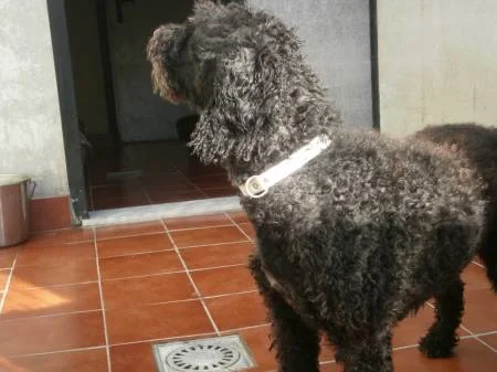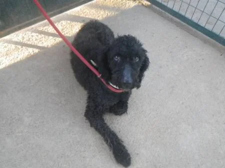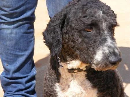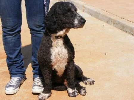 Morgan es un Perro de Agua Español color negro, de pecho y manos blancos, es bueno, equilibrado, se muestra deseoso de caricias, es bello y tiene el pelo rizado y rústico típico en los Perros de Agua. Anda bien con la traílla, a tu lado, aunque al salir del chenil tira un poco por el ansia de pasear, pero esto seguramente se le quitará en el momento que sepa que alguien va a cuidarlo y pasearlo cada día sin prisas. Aguanta todo lo que puede las ganas de hacer sus necesidades, pues prefiere hacerlas fuera cuando lo sacan, porque así alguien se lo enseñó de pequeño y él lo aprendió queriendo ser un perro bien educado para agradar a quien fue su dueño. A pesar de todo lo vivido no ha olvidado sus buenas costumbres y sueña con poder conocer un hogar en el que sus nuevos dueños se sientan orgullosos de él, y con pasear de la traílla junto a ese humano que lo quiera para siempre.