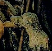 Bien, esta es la leyenda del santo y nada de especial tiene que aparezca con un perro, lo singular para nosotros es que en este caso sea un Perro de Agua Español y la explicación a mi entender puede ser la siguiente: Siendo su autor el insigne escultor sevillano Pedro Roldán (siglo XVII), y tratándose de la época en que impera el Barroco con sus características bien conocidas de naturalismo ¿qué clase de perro podría escoger para una composición que requiriese un can? A mi parecer cualquiera de los que comúnmente habría por la ciudad, y en especial por los alrededores del puerto donde se encontraba la Iglesia de la Caridad, junto a las Reales Atarazanas. Seguramente debido a la polivalencia de esta raza (Perro de Agua Español) y su tradicional ocupación como ayuda en los puertos, no sería de extrañar que fuese bastante común encontrarlos por allí.
