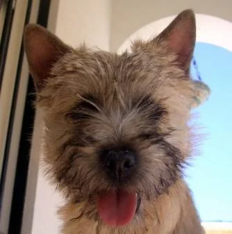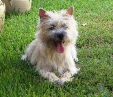 El pelaje de nuestro Cairn está compuesto de dos capas diferentes, una exterior dura y áspera y otra interior lanosa y mucho más suave. El pelo muerto no cae por sí solo como sucede en la mayoría de las razas, en el caso del Cairn (y en otras razas de pelo duro) permanece en el manto hasta que se extrae, ya sea por rozamiento o manualmente. El rozamiento al que aludimos es lo que antaño les permitía mantener esta regeneración sin ayuda de nuestras manos puesto que lo hacían por frotamiento en el campo con la vegetación favoreciendo así el regeneramiento capilar de manera natural. Sin embargo, al perderse esta actividad, al utilizar al Cairn como perro de compañía se pierde la posibilidad de que reemplacen el pelaje por sí solos y hemos de hacerlo nosotros. De lo contrario, si permitiésemos que permaneciese el pelo muerto éste acabaría impidiendo la correcta transpiración de la piel pudiendo causar incluso problemas cutáneos al obstruir los poros. Si lo cortásemos el pelo perdería paulatinamente su color y aspereza, volviéndose suave y ondulado, incluso rizado, luego sería arduo y lento recuperar un pelo duro y brillante. Por lo tanto debemos saber que en el caso del Cairn el trabajo de peluquería que requiere no se trata de un arreglo estético sino orientado a la salud de la piel y la calidad del pelo. De hecho su aspecto debe dar prioridad siempre a la rusticidad, alejándose de modas o excesivos retoques que le restarían la frescura que caracteriza a esta raza. Pues no en vano estamos ante una raza antaño utilizada en Escocia, su lugar de origen, como ayuda al hombre, desempeñando su labor de magnífico cazador de alimañas entre los cairns, montículos de piedras (de ahí su nombre). Y es precisamente ese aspecto rústico, de perro útil en el trabajo, uno de sus mayores encantos, sin meternos en pormenorizar su carácter siempre alegre y aptitudes, pues esto sería objeto de otro apartado.